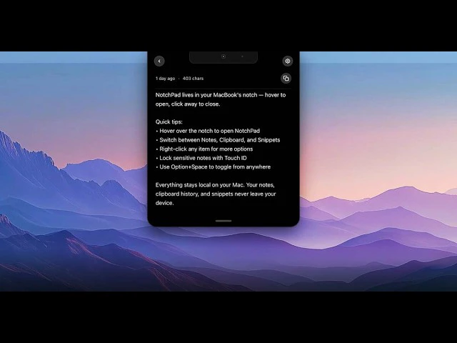 「NotchPad」は、MacBook Proのノッチを活用したノートアプリで、クリップボード履歴やコードスニペットの機能も備えています。全てのデータはローカルで暗号化され、サーバーには保存されません。