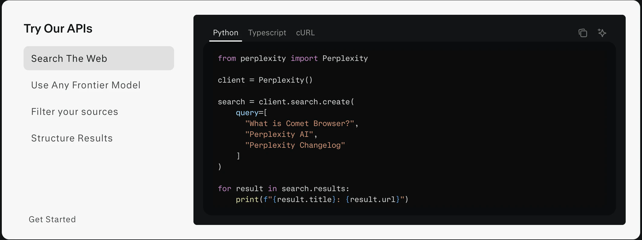 「Perplexity API Platform」は、開発者向けにリアルタイムの200B以上のURLインデックスを提供し、信頼性の高い検索APIとエージェントAPIを特徴とするプラットフォームです。これにより、従来の古いトレーニングデータや弱い検索APIに依存することなく、高性能なAIアプリケーションの開発が可能になります。
